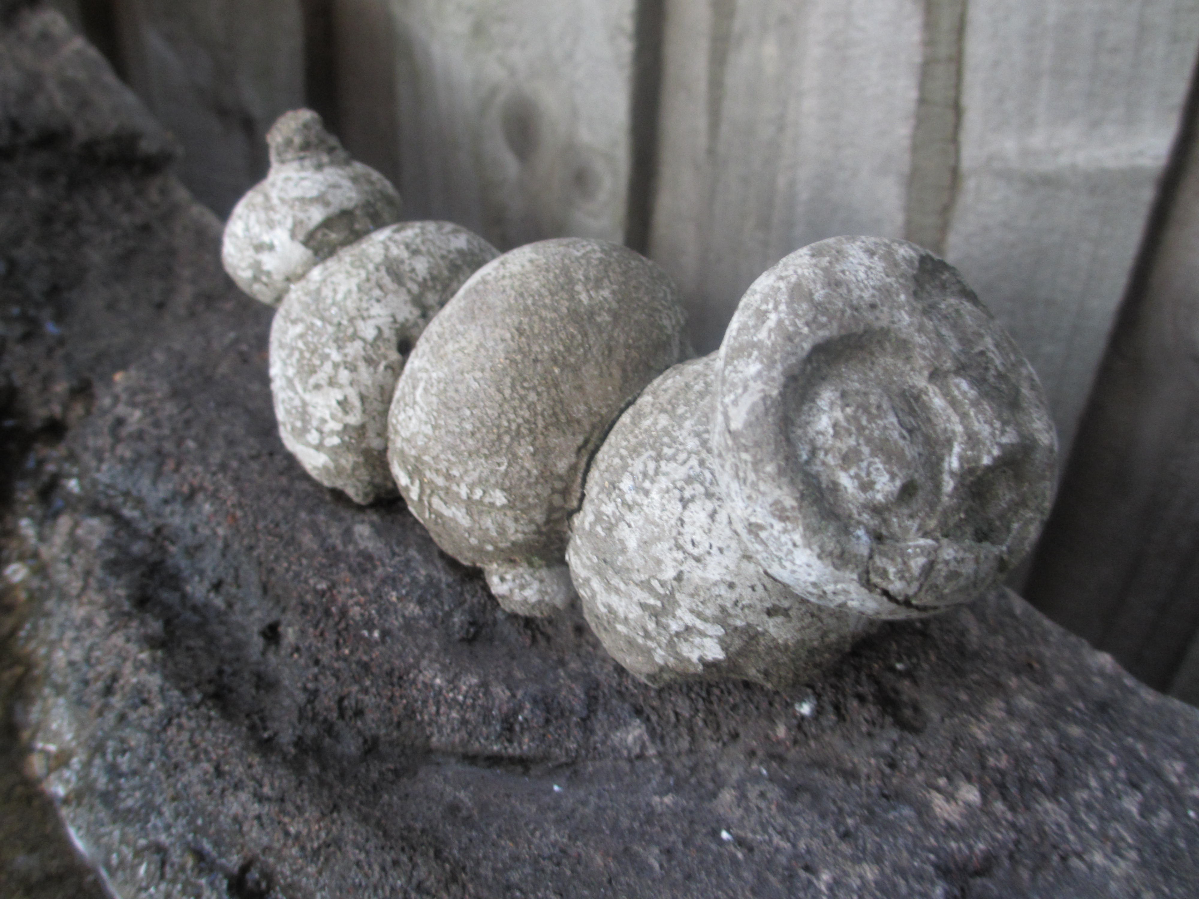 Concrete caterpillar made from a plaster mould